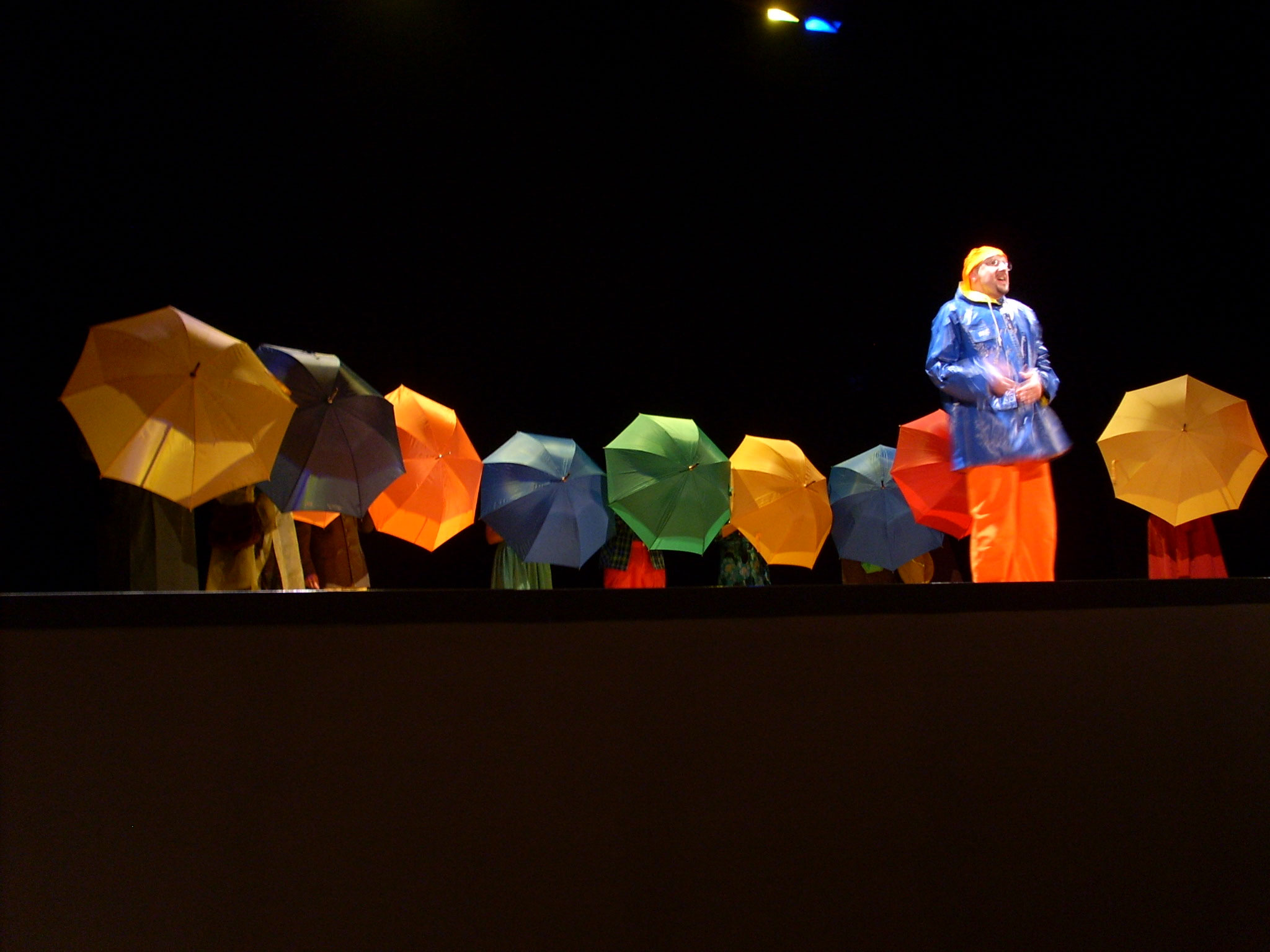 Un testo quasi irriverente che racconta i giorni critici di Firenze durante l’alluvione attraverso un affresco di personaggi divertenti, graffianti e poetici allo stesso tempo. Dopo aver piacevolmente “giocato” con la drammaturgia di Alberto Severi per lo spettacolo “I marziani”, Teatri d’imbarco si propone di portare in scena questo “Fincostassù”. Una cronaca dell’alluvione ora umoristica, ora grottescamente esilarante. Un girotondo di personaggi che uno dopo l’altro si passano il testimone del racconto. Sul palco quindici giovani attori immersi in una scena gioiosamente astratta.